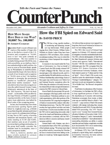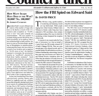 2005 “How the FBI Spied on Edward Said.” CounterPunch December 1-15, 12(21):1,4-5.