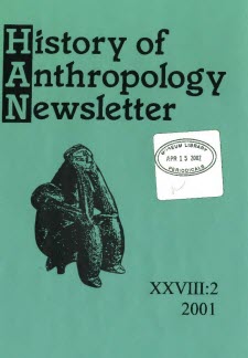 2001 “’The Shameful Business’: Leslie Spier on the Censure of Franz Boas.” History of Anthropology Newsletter XXVIII(2):9-12.
