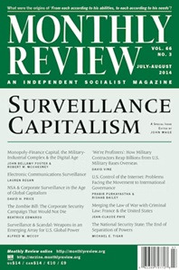 2014 “The New Surveillance Normal: NSA and Corporate Surveillance in the Age of Global Capitalism.” Monthly Review July-August 2014, 66(3):43-53.